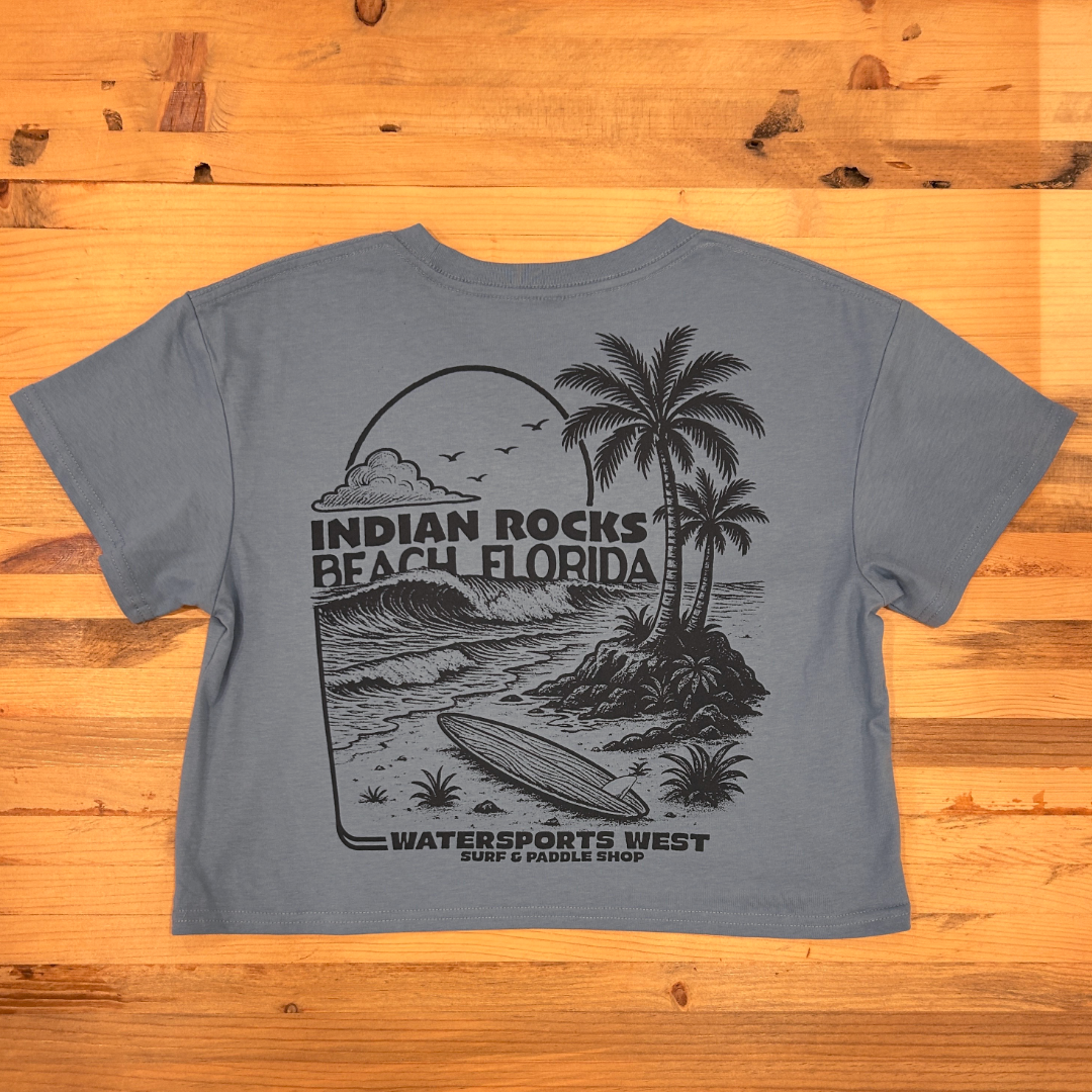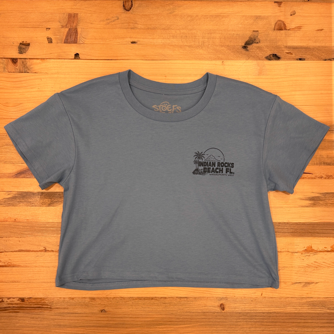 Watersports West x Stoefs Costal Classic Women’s Cropped Tee. Women’s Carolina Blue Surf Tee Shirt. Comes in Extra-Small, Small, Medium, Large and Extra-Large.