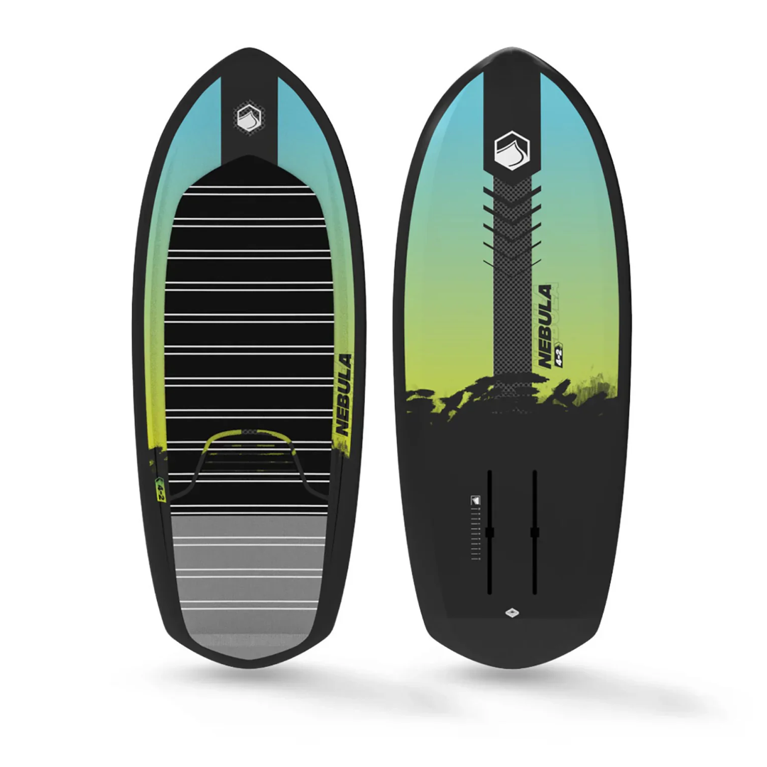 The Nebula is a foil specific board made in our extremely durable Dura-Surf construction. Featuring a concave deck for refined board feel and control. The Chine Rail helps unleash the board from the water easily and get you up and ripping. A slight double concave that moves into a flat hull as it goes out the kicked up tail, providing a minimum water contact surface that planes efficiently and getting you up to take off speeds!