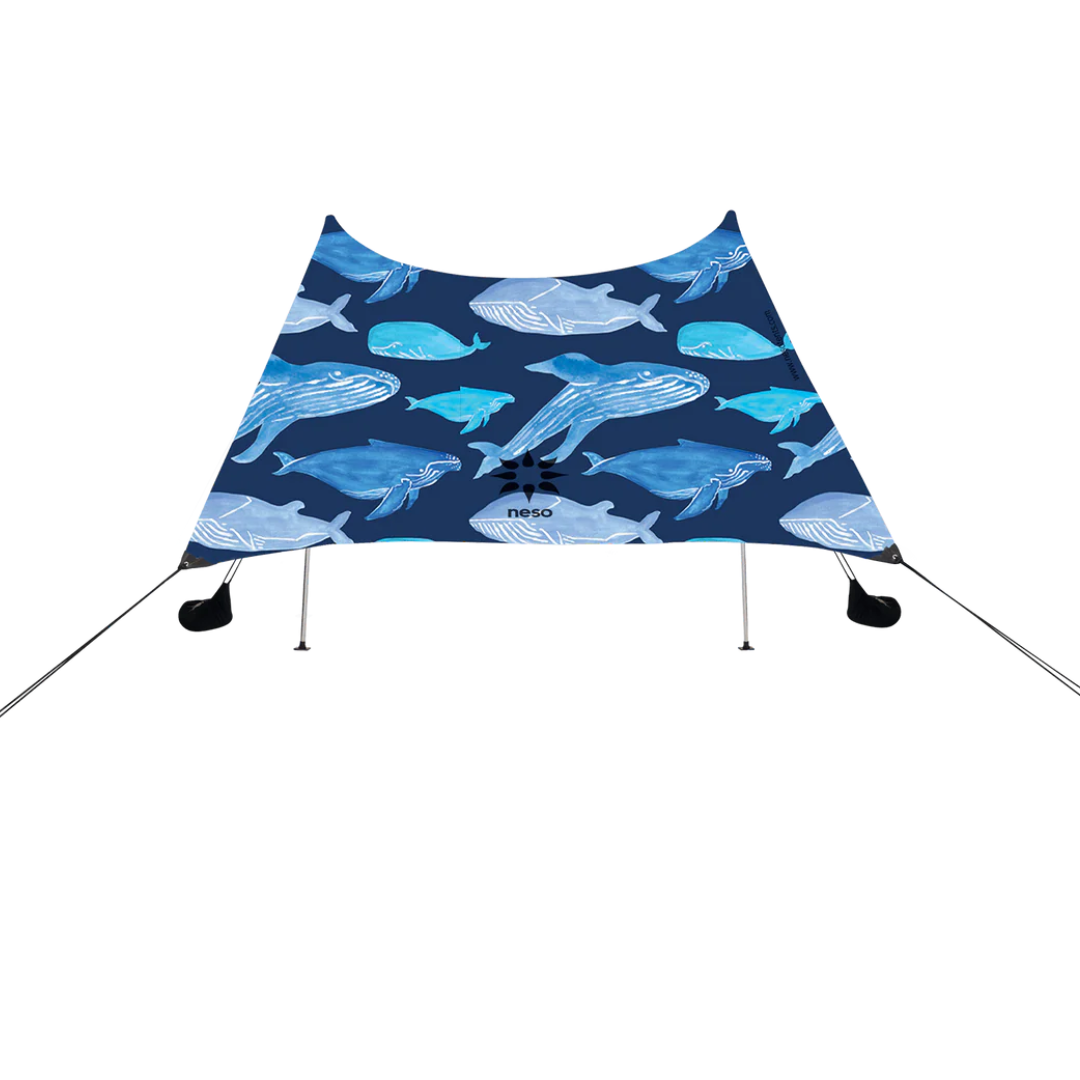 Neso’s signature beach tent, anchored with sand or rocks, designed for ultimate ease.