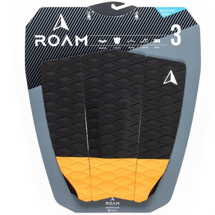 Complete your ride with a little extra grip from the Roam 3 Piece Traction Pad. Designed with a middle height arch, middle height kick, and a diamond cut texture, this medium size pad provides plenty of grip without locking you into one foot position.